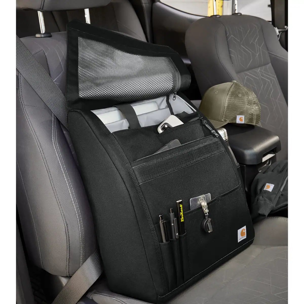 Expand your mobile office and reduce clutter in your car or truck with this rugged organizer. It easily clips to your seatbelt and securely organizes your laptop, water bottle, pens and more.