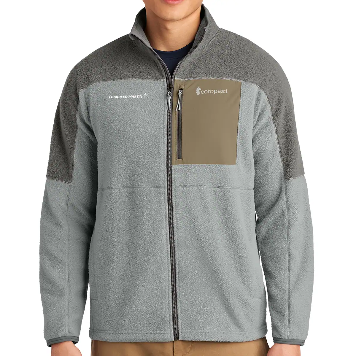 • Contrast Cotopaxi heat transfer logo on left chest pocket